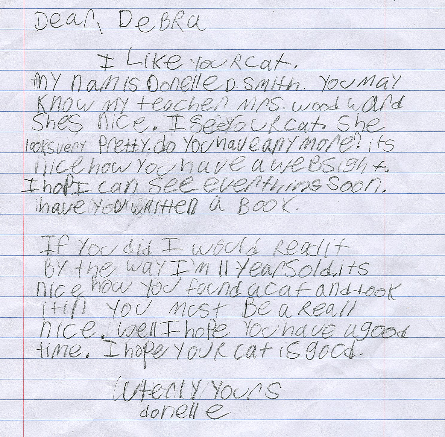 Fan Mail THE CAT LADY GOT FAN MAIL! Below are the first three letters from my fans at: Received Friday, October 24, 2008 I bet you’re wondering if I wrote them back! Yes. Yes. Yes.